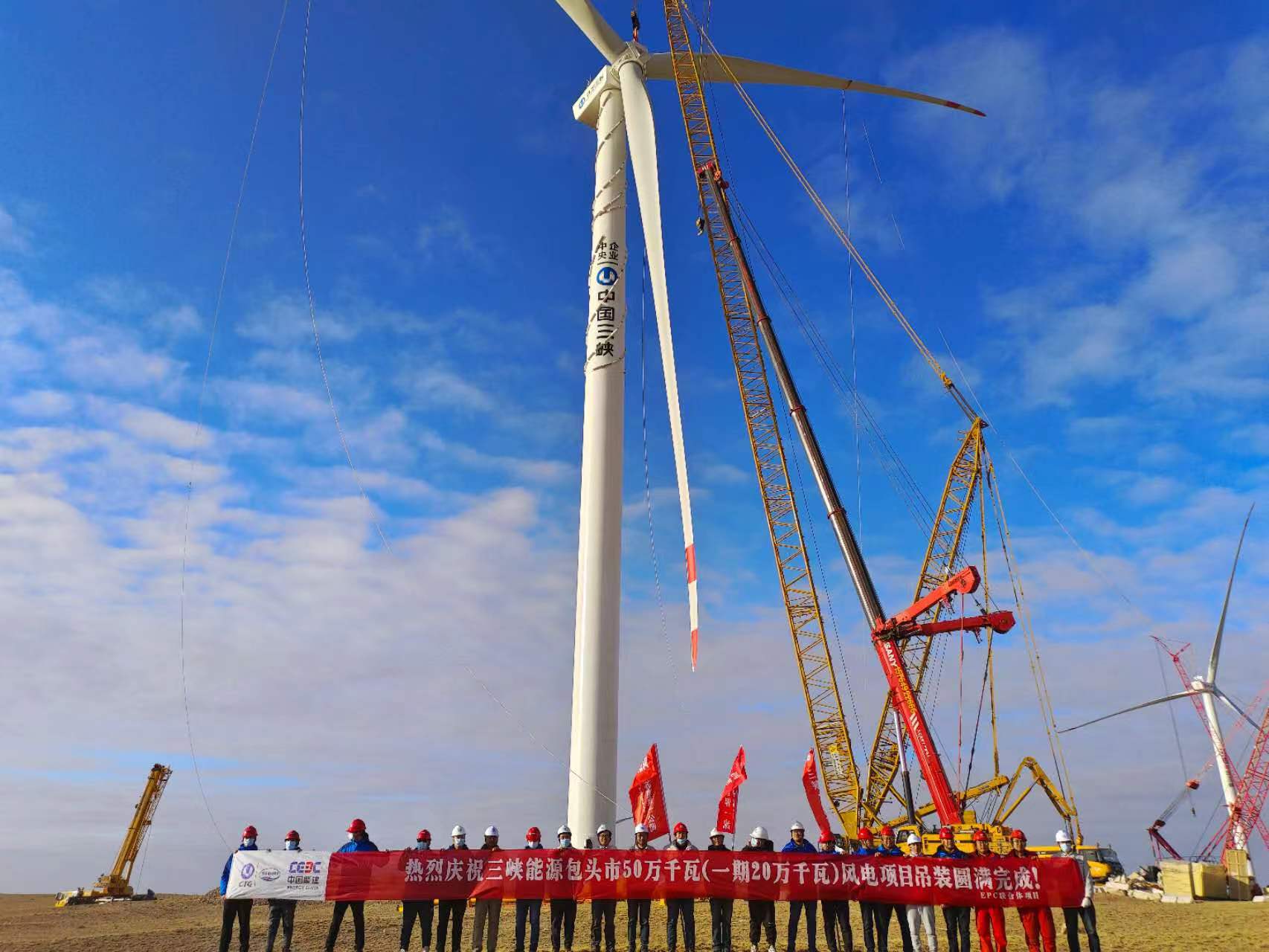 包頭市可再生能源綜合應用示范區1號50萬(wàn)千瓦(一期20萬(wàn)千瓦)風(fēng)機全部吊裝完成。鄭泰博攝